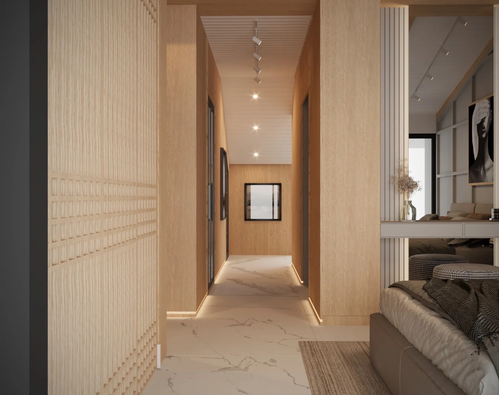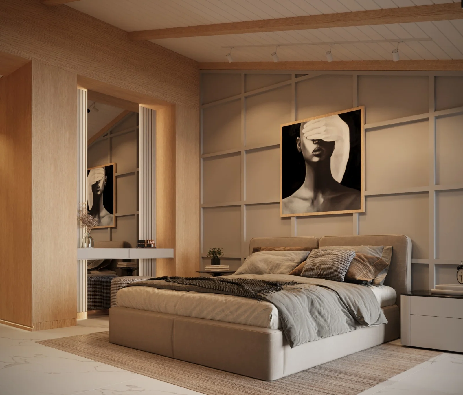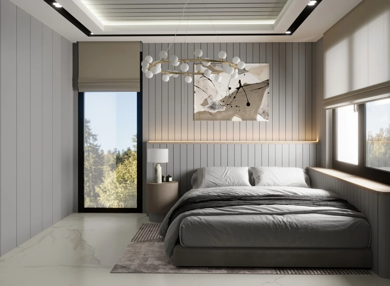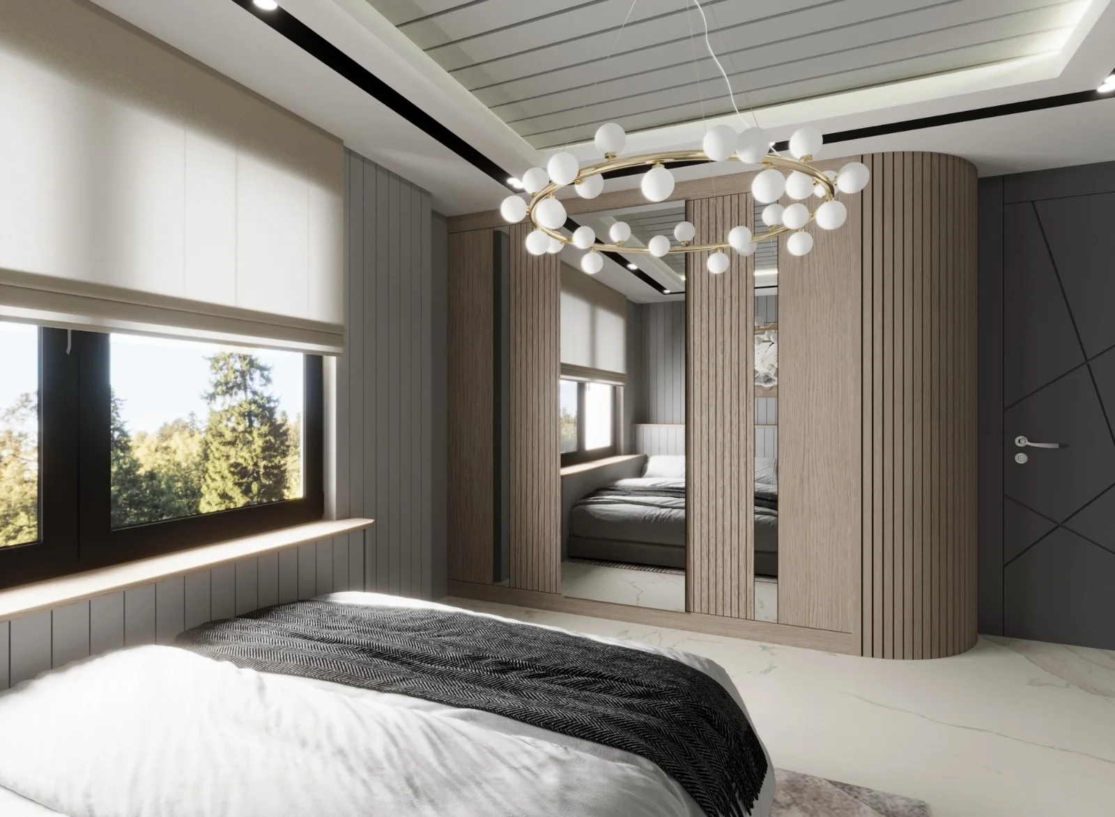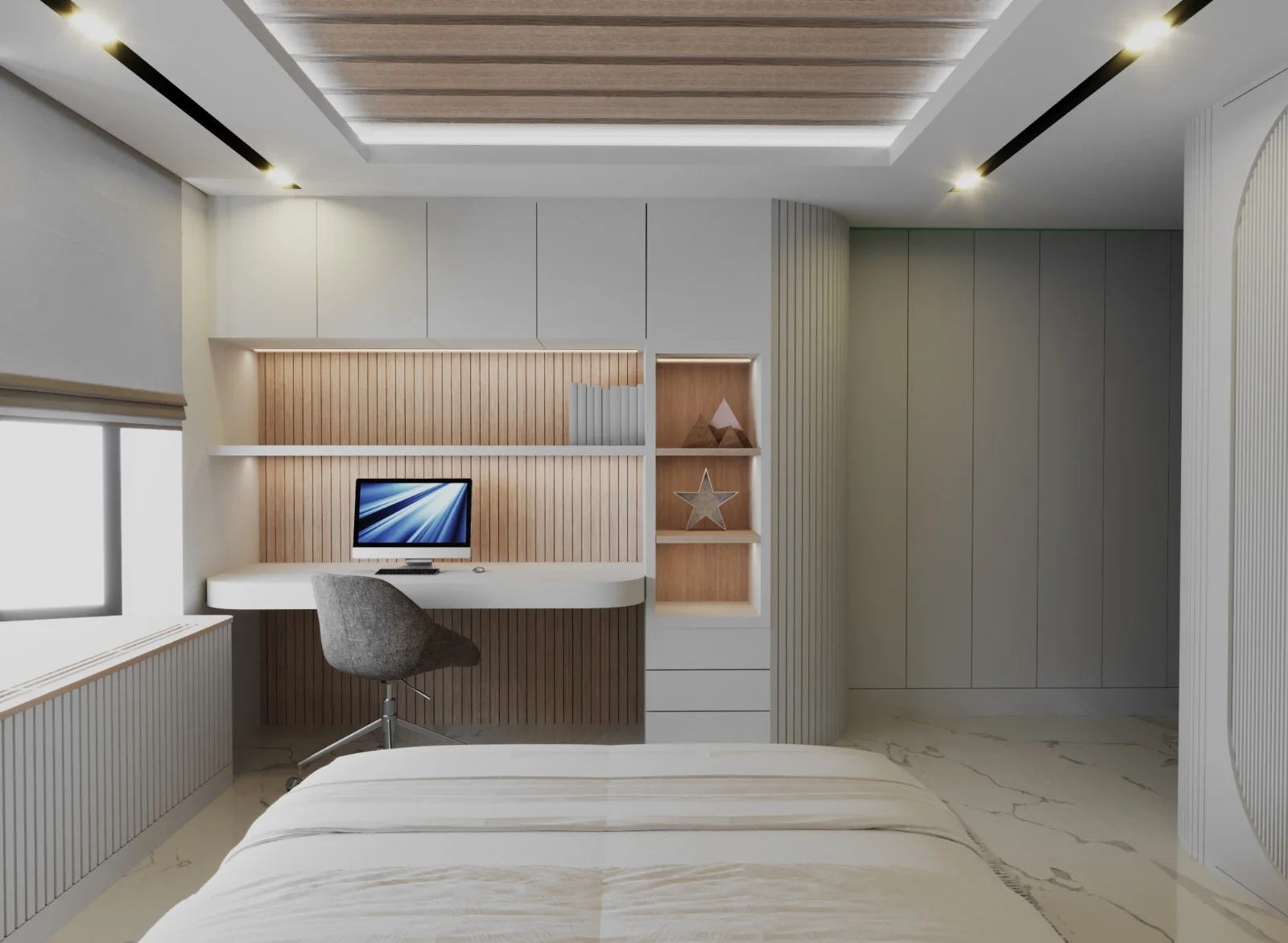 DNY Mimarlık, modern estetikle sıcak ve davetkâr bir atmosfer oluşturmayı amaçladığı büyük oda konut tasarımlarında, ahşabın doğal sıcaklığını duvarlarda kullanarak mekânlara benzersiz bir karakter kazandırıyor. Meşe ahşap kaplamalar, tasarımlarımızın temelini oluştururken odalara doğallık ve sıcaklık katıyor. Duvarlarda kullanılan meşe ahşap kaplamalar, mekânın içinde huzurlu bir atmosfer yaratırken aynı zamanda modern mimariye özgü dokunuşları da sunuyor. Ahşabın sıcak tonları, odanın her köşesine doğal bir zarafet katarken, modern seramik kaplamalarla bütünleşen zemin ise mekânın çağdaş karakterini vurguluyor. Zemindeki modern seramik kaplamalar, tasarımın dinamik yönünü ve modern estetiği vurguluyor. Temiz çizgiler, zarif desenler veya minimalist dokunuşlarla zemindeki seramik kaplamalar, mekânın ferah ve modern bir hissiyatını destekliyor. Işıklandırmaya da büyük önem veriyoruz. Doğal ışıkla birlikte kullanılan aydınlatmalar, ahşap ve seramik detaylarıyla harmanlanmış bu büyük odaların sıcaklığını ve modern çizgilerini vurguluyor. Bizim tasarımlarımızda, ahşap ve seramik gibi farklı malzemelerin uyum içinde kullanılması, odaların çağdaş, davetkâr ve sıcak bir atmosfere sahip olmasını sağlıyor. Bu kombinasyon, mekanlara benzersiz bir kimlik kazandırırken modern yaşamın gereksinimlerini de karşılıyor.