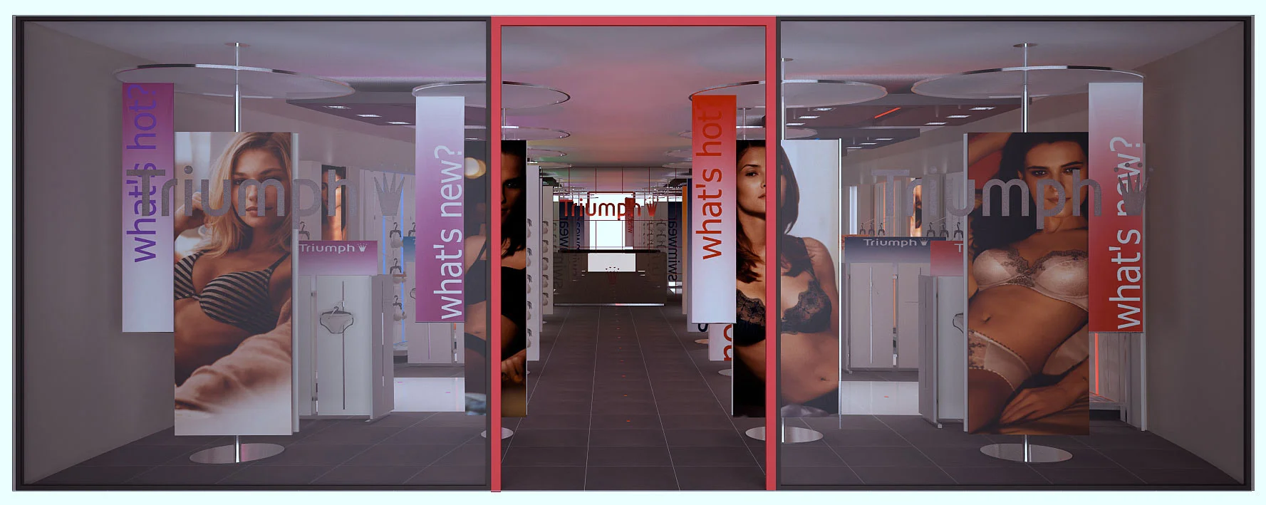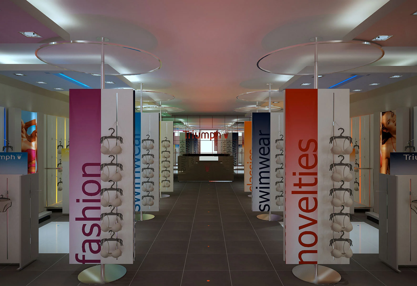 Triumph mağazasının konsept tasarımında, markanın değerlerini ve estetik anlayışını yansıtan öğeler ön planda tutulmuştur. Mağaza içerisinde kullanılan renkler, malzemeler ve aydınlatma detayları markanın genç ve dinamik kimliğini vurgulamakta ve müşterilere çağdaş bir atmosfer sunmaktadır. Ürün teşhir alanları, raf düzenlemeleri ve vitrinler, müşterilerin ürünlere kolaylıkla erişebilmelerini sağlarken aynı zamanda görsel bir şölen sunmaktadır. Dny Mimarlık, mağaza tasarımında kullanıcı deneyimini en üst düzeye çıkarmak için alan optimizasyonu ve ergonomiye büyük önem vermiştir. Müşterilerin rahat dolaşımı, ürünleri keşfetme imkanı ve deneme kabini gibi özel alanların konforu gözetilerek tasarlanmıştır. Müşteri memnuniyetini artırmak ve alışveriş deneyimini unutulmaz kılmak adına detaylara özen gösterilmiştir.