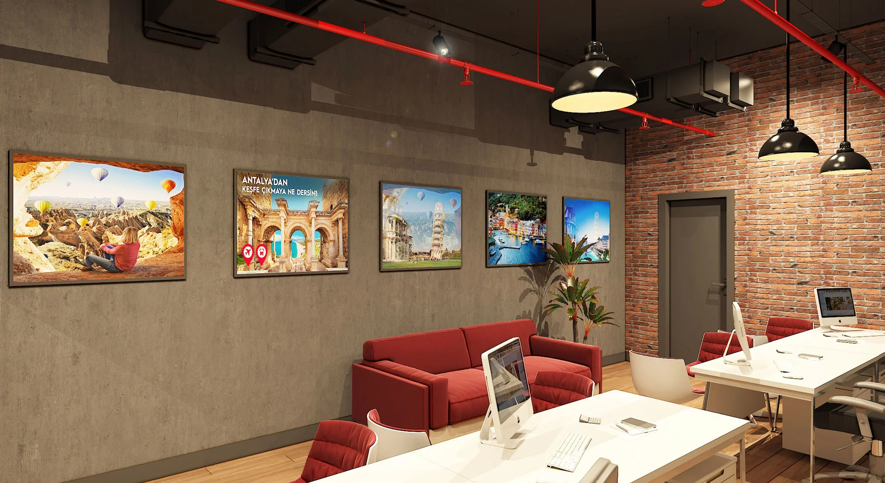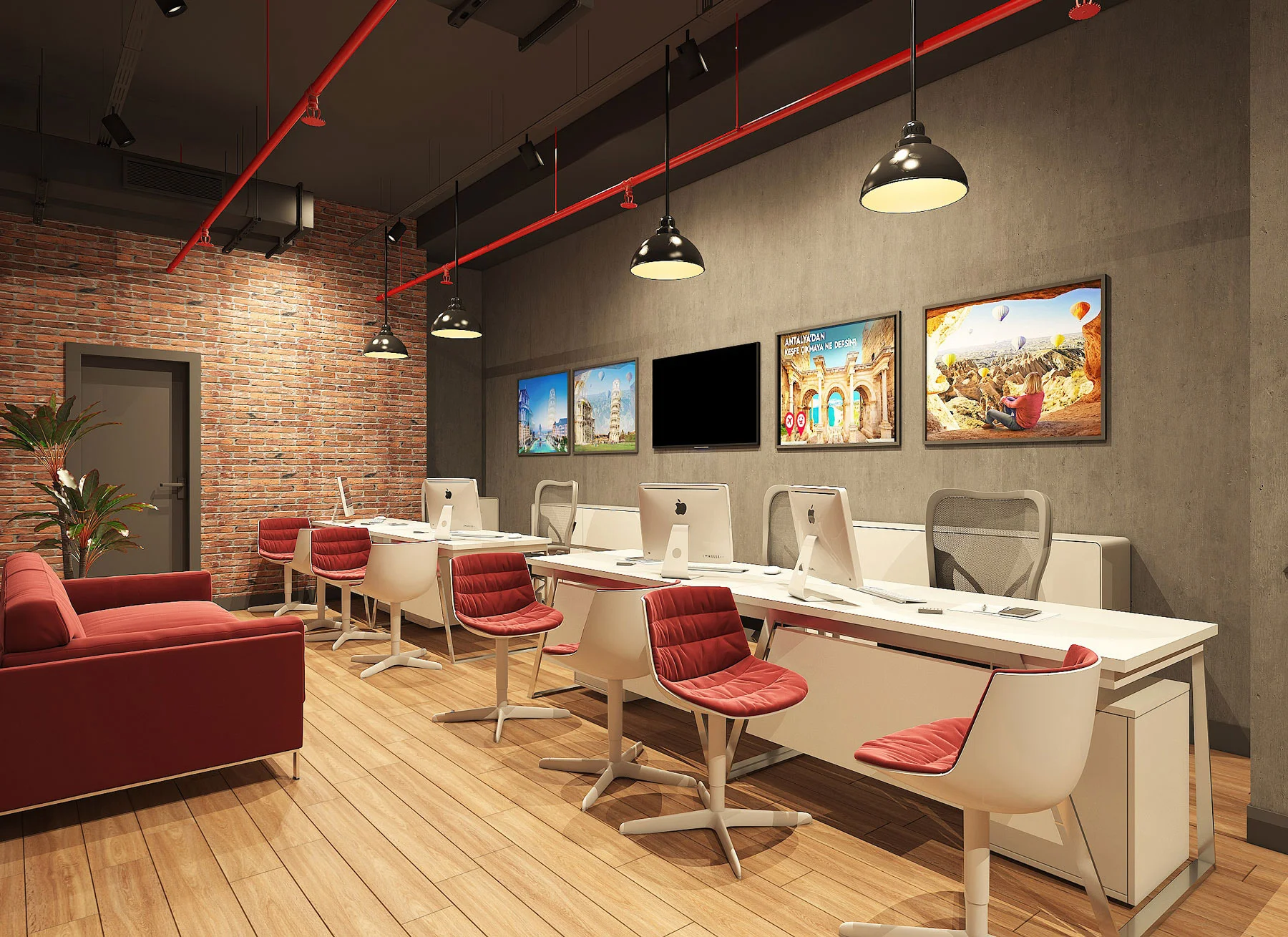 DNY Mimarlık, acentanın ihtiyaçlarına uygun bir iç mimar ofis tasarımı gerçekleştirirken, aynı zamanda işlevsellik, estetik ve konforu bir arada sunmayı hedeflemiştir. Çalışanların ve ziyaretçilerin ihtiyaçlarını karşılayan bir ortam yaratmak için alanın en verimli şekilde kullanılmasına özen gösterilmiştir. Jolly Tur Marmara Forum AVM acentası, DNY Mimarlık tarafından yenilenen yeni konseptiyle misafirlerini ağırlamaktadır. Hem işlevsel hem de estetik açıdan başarılı bir ofis tasarımıyla donatılan acente, seyahatseverlere unutulmaz bir deneyim sunmak için özenle hazırlanmıştır.