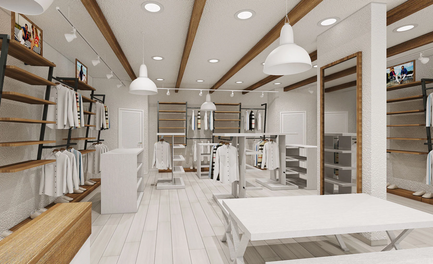 Renk seçiminde, Kığılı Erkek Giyim'in marka renkleri ve tarzı göz önünde bulundurulmuş, aynı zamanda Marmaris'in turistik ve canlı atmosferine uygun tonlar tercih edilmiştir. Aydınlatma ise ürünlerin doğru şekilde vurgulanmasını sağlayacak şekilde planlanmıştır. Mağaza içindeki düzenlemelerde, ürün teşhiri, rafların ve sergileme alanlarının optimal kullanımı ve kolay erişilebilirlik ön planda tutulmuştur. Müşterilerin rahatça dolaşabileceği geniş geçiş alanları ve uygun seçenekler sunan prova odaları da tasarımın bir parçası olmuştur.