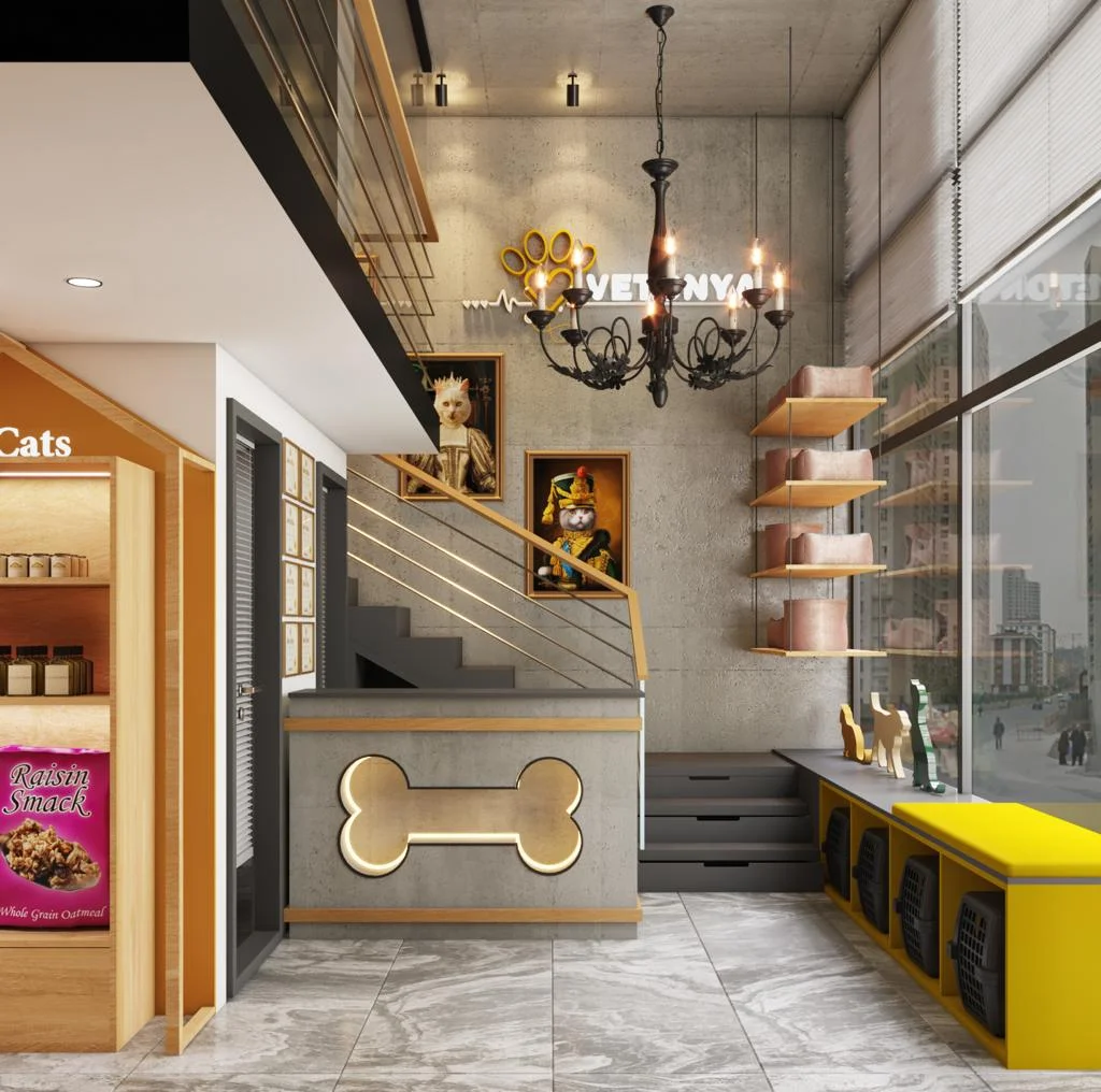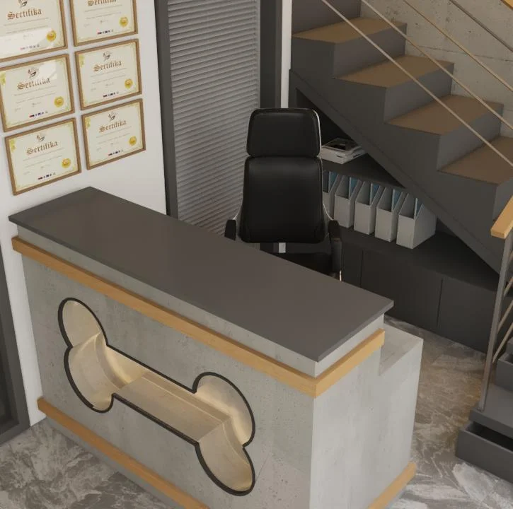 Bu veteriner kliniği iç mimari tasarımı; estetiği, fonksiyonelliği ve hijyen standartlarını modern bir yorumla bir araya getirerek hem hayvan dostlarımız hem de sahipleri için konforlu bir ortam sunuyor. Klinik içerisinde yer alan her detay, profesyonel bir sağlık hizmeti sunarken aynı zamanda sıcak ve güven veren bir atmosfer oluşturmayı amaçlıyor.