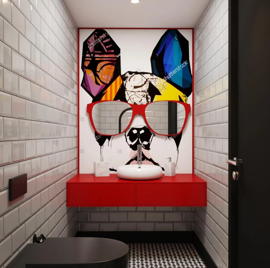 Muayene odalarına geçiş kısmında kullanılan fonksiyonel depolama alanları ve düzenli raf sistemleri, hem çalışanlar hem de pet sahipleri için pratik bir kullanım sağlıyor. Kliniğin tuvalet tasarımında kullanılan eğlenceli duvar grafiği ise mekâna neşeli bir dokunuş katıyor. Canlı renklerle sade yüzeylerin bir araya gelmesi, mekânın enerjisini yükselterek keyifli bir deneyim sunuyor.
